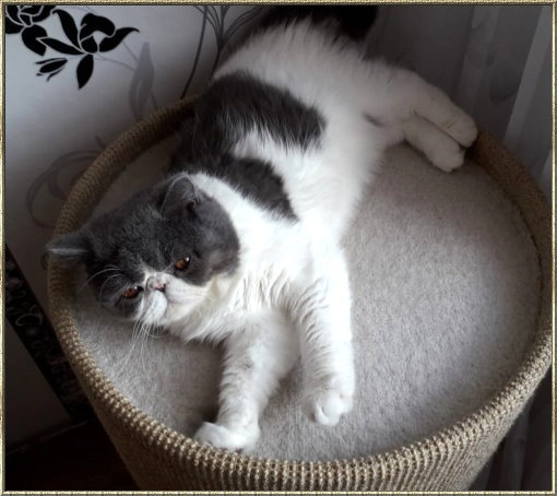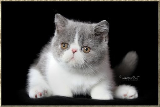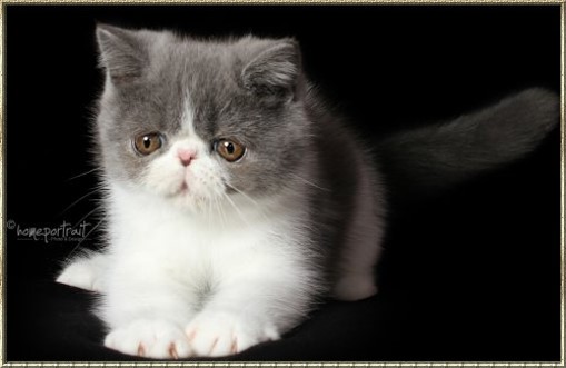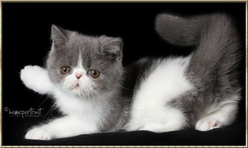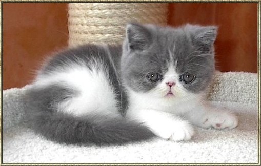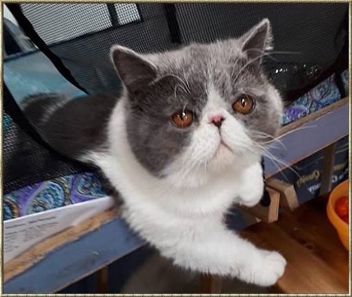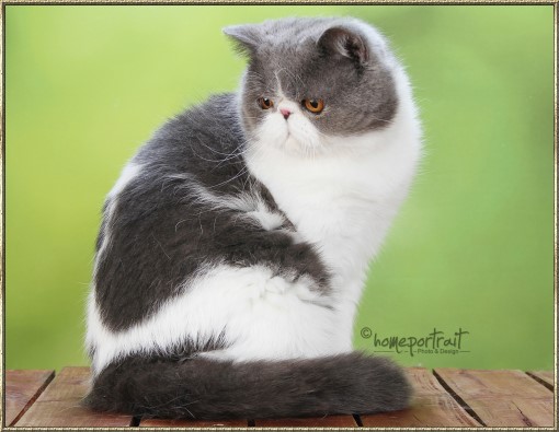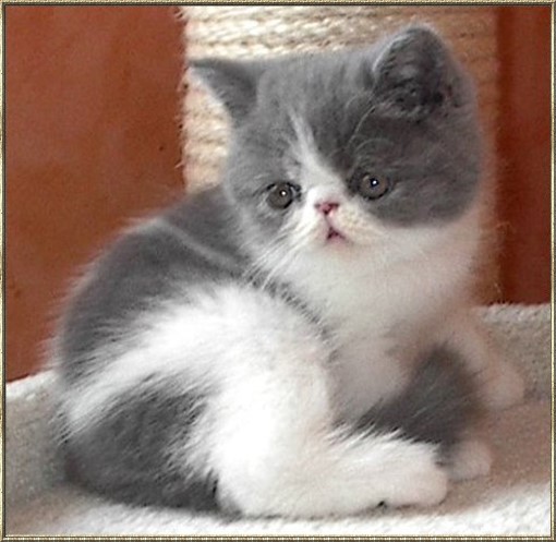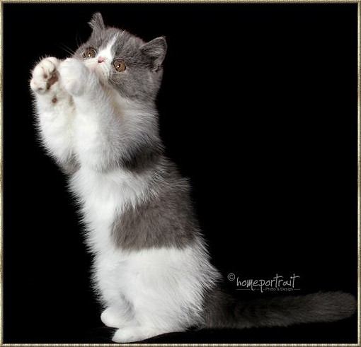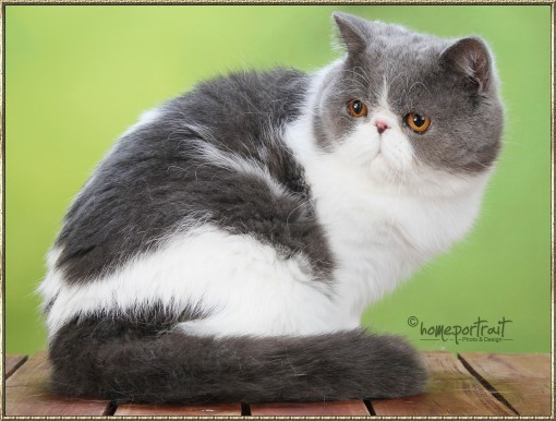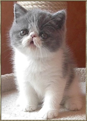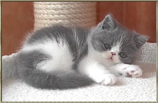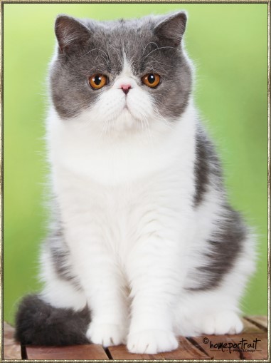 Ch. Esta vom weißen FelsFarbe: blue-tabby/cl.-white Rasse: Exotic Shorthair
